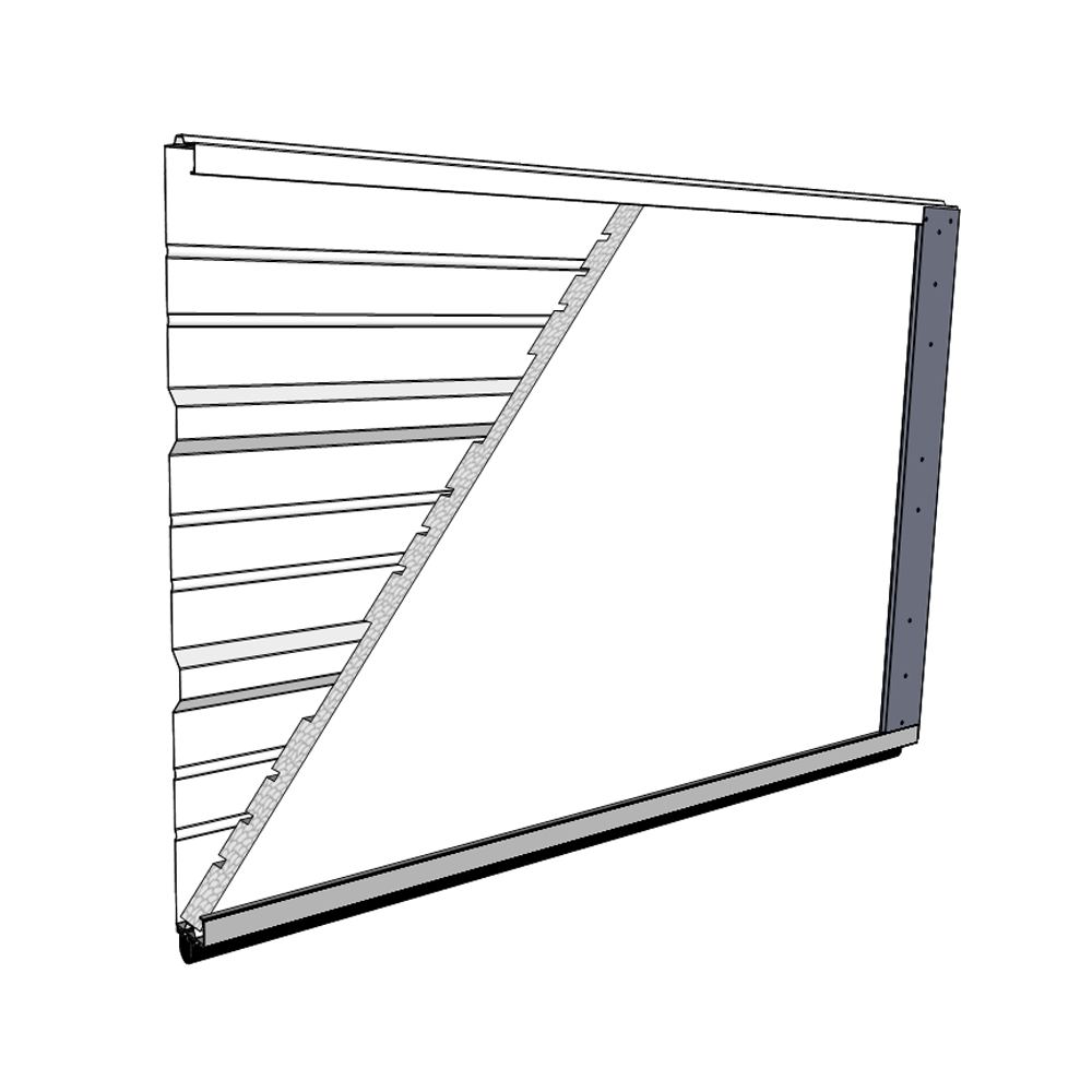 Panels are smooth finish with two deep ribs and six small grooves. 2″ section thickness.